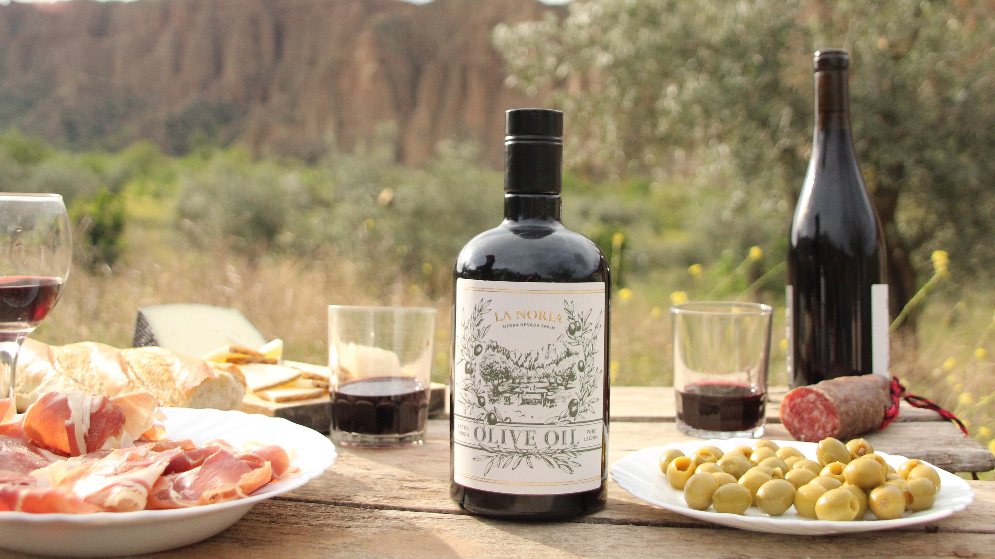 La Noria Extra Virgin Olive Oil - 100% pure Lechin and single estate. Hand harvested from century old olive trees. Round flavour profile. Limited edition. Fresh 2023/2024 harvest.